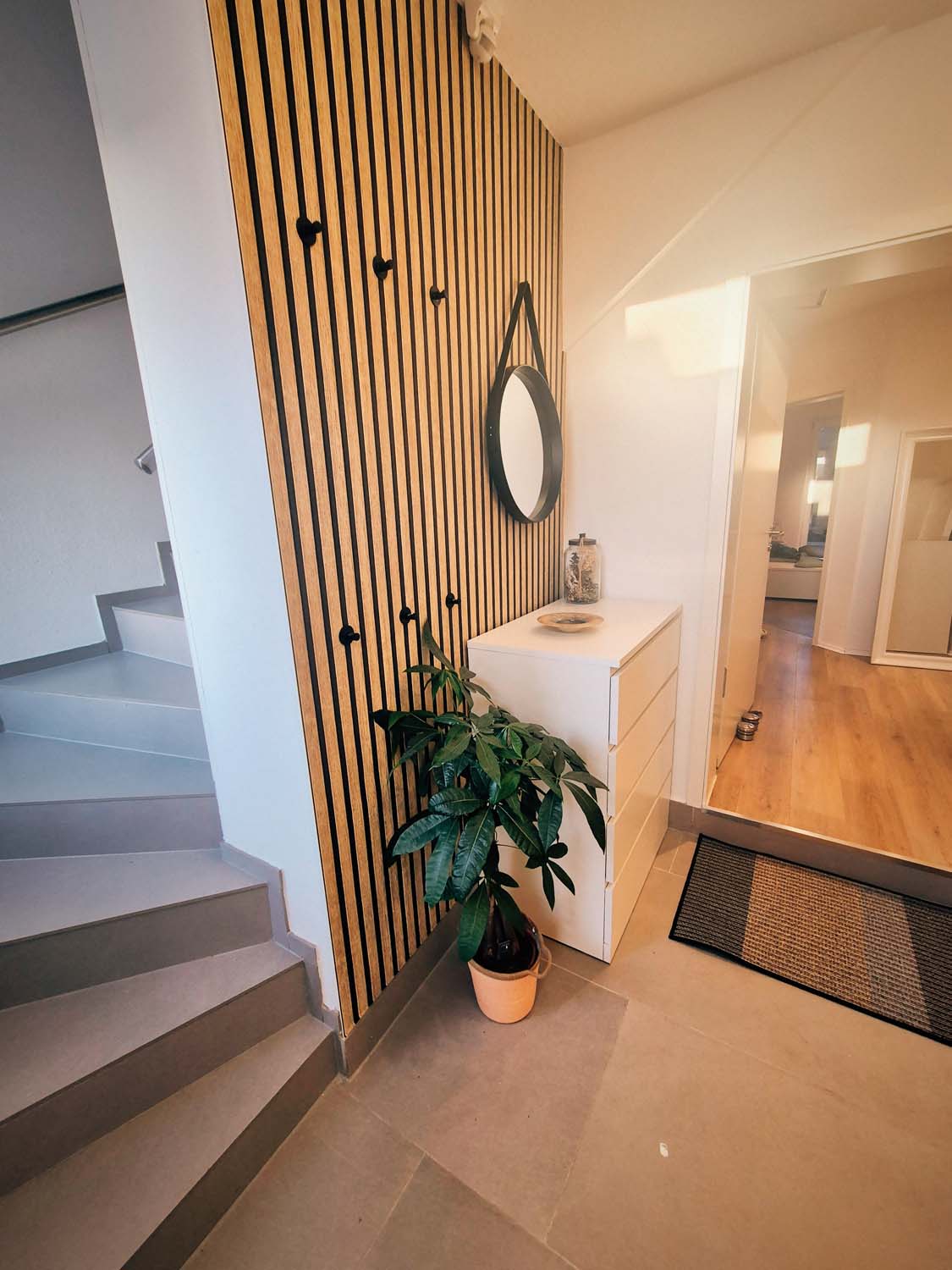 Die zweite Etage ist nach links und rechts geteilt und hat auf beiden Seiten jeweils ein Badezimmer und drei Zimmer. Auch zwei Abstellräume finden in dieser Etage ihren Platz.